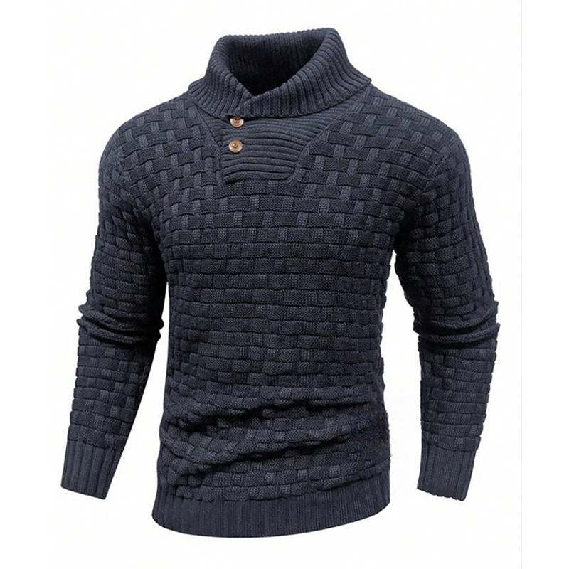 Men's Solid Color Round Neck Pullover Lapel Sweater