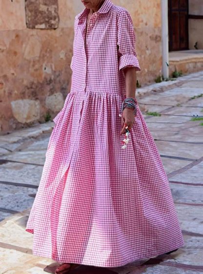 Women's Retro Plaid Button Down Maxi Shirt Dress(Buy 2 Free Shipping)