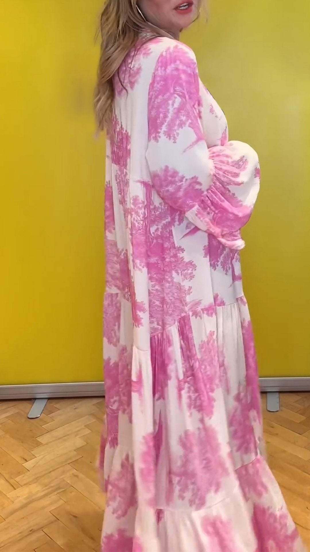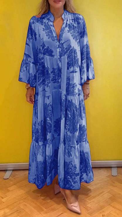 Women's summer dress with V-neck and forest pattern Maxi dress